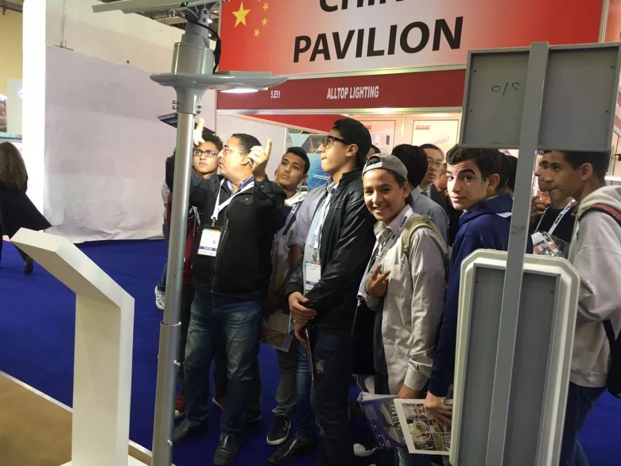 埃及是非洲工業較發達國家之一,中埃友好關系也由來已久,特別是隨著中國“一帶一路”倡議的提出,中埃在能源、交通設施及通訊領域將有著更多的合作。源碼太陽能智慧路燈作為中國品牌積極響應國家“一帶一路”倡議,攜系列產品亮相了這一盛大的展會。