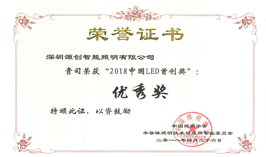4月26日,源碼榮獲第五屆中國LED首創獎“優秀獎”。