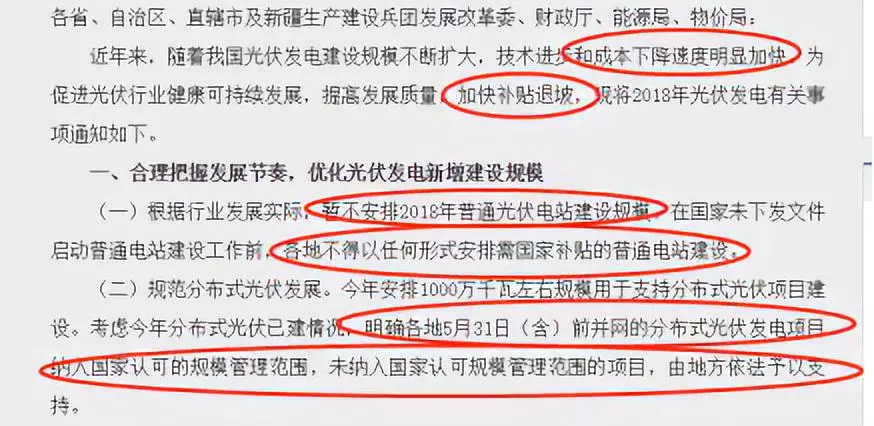 國(guó)家發(fā)改委,財(cái)政部,能源局發(fā)布“531”新政,新政指出“隨著光伏發(fā)電建設(shè)規(guī)模不斷擴(kuò)大,暫不安排2018年普通光伏電站建設(shè)規(guī)模,各地不得以任何形式安排需國(guó)家補(bǔ)貼的普通電站建設(shè)。加快光伏發(fā)電補(bǔ)貼退坡,降低補(bǔ)貼強(qiáng)度。”“531”新政似乎給如日中天的光伏發(fā)電業(yè)“澆了盆驟不及防的冷水”,揭開(kāi)光伏業(yè)繁華偽裝的面紗,那么,“531”新政對(duì)于光伏行業(yè)有什么影響?