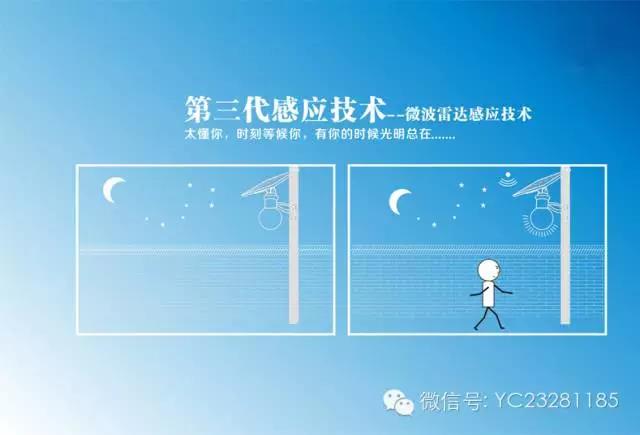 太陽能路燈,怎么樣在同等配置下延長其照明時間,即不影響亮度,也不浪費寶貴的能量,在國內常見的應用是第二代感應技術—人體紅外感應技術,而鑒于其穩定性,感應距離及抗干擾能力方面的弊端,源創成功引入第三代軍用感應技術—微波雷達感應技術。此項技術獲得了國家發明專利,同時源創在感應技術領域持續發力,值得期待。